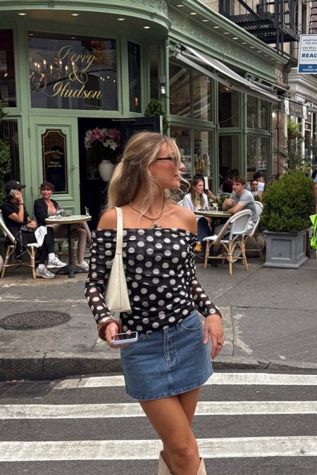 Details Black velvet topOff shoulderSweetheart necklineExposed zipper to backPartially lined Materials and Care Self: 100% polyesterContrast: 95% polyester, 5% spandexLining: 97% polyester, 3% spandexHand wash coldLine dry All sale items are considered final sale.
